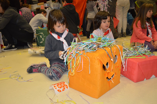 Les Ampes de les escoles de primària de Solsona (Setelsis, Arrels i Vinyet), l'Agrupament Escolta, l'Esplai Riallera, els Gegants del Tros i la Patinfanjàs, hem sumat esforços per fer un acte encara més participatiu. A les 16:00 h hem fet un taller de gegantons en que els infants amb la seva imaginació i les seves mans han convertit simples caixes de cartró en dracs, llops, princeses, gegantones atrevides, i simpàtics gegantons.